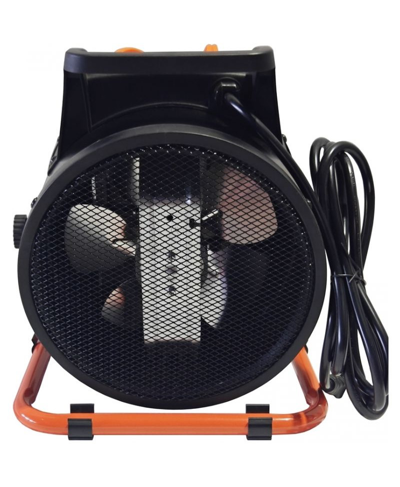 Zasilanie odbywa się prądem o standardowym napięciu 230V. Dzięki zastosowanemu wentylatorowi, powietrze pchane jest wokół komory grzewczej co zapewnia maksymalny wydatek ciepłego powietrza!