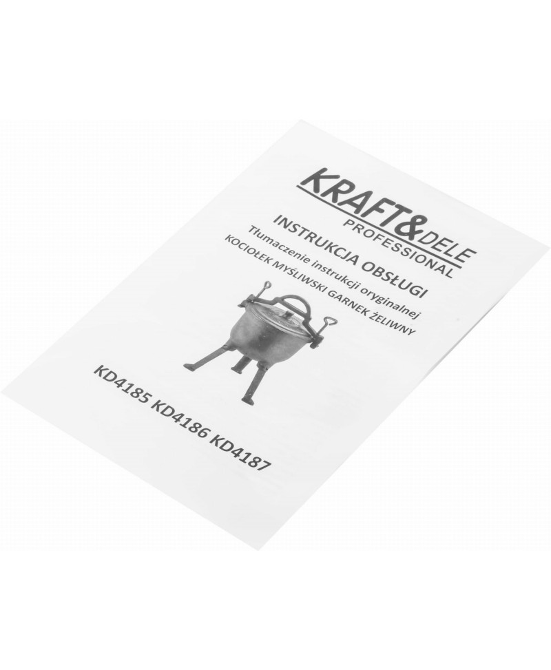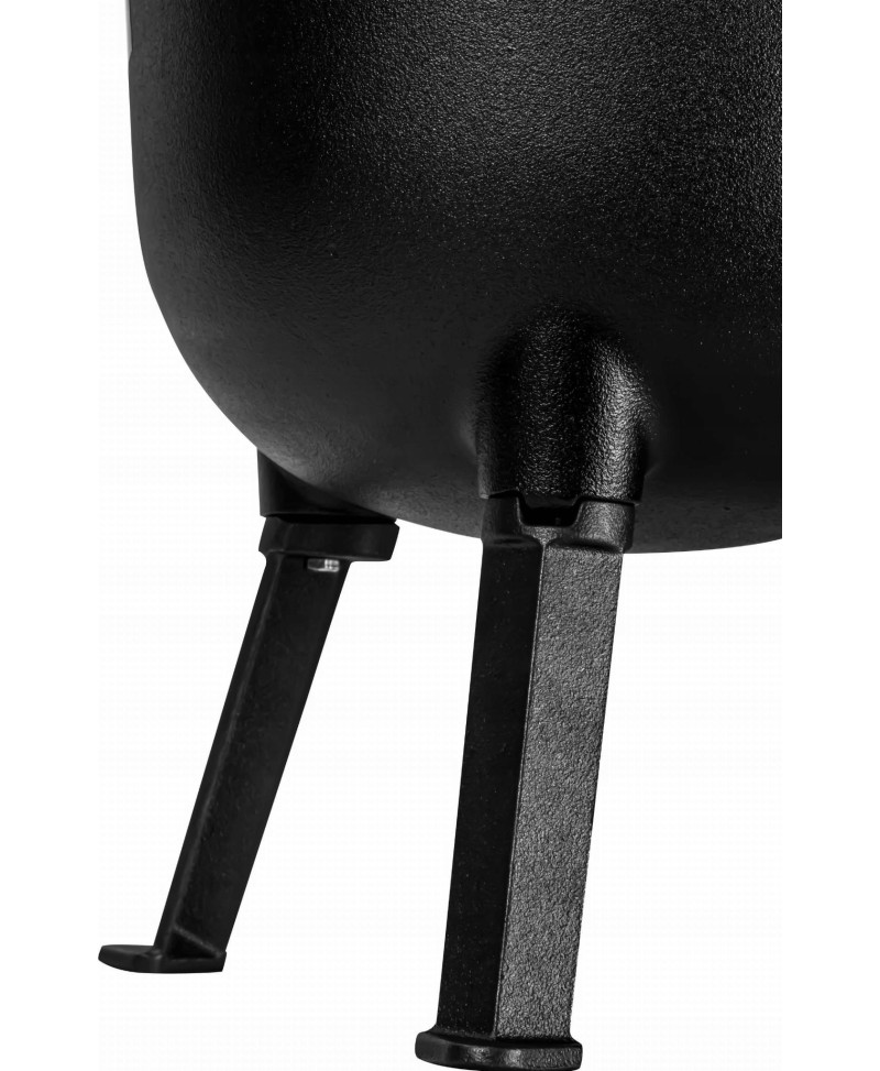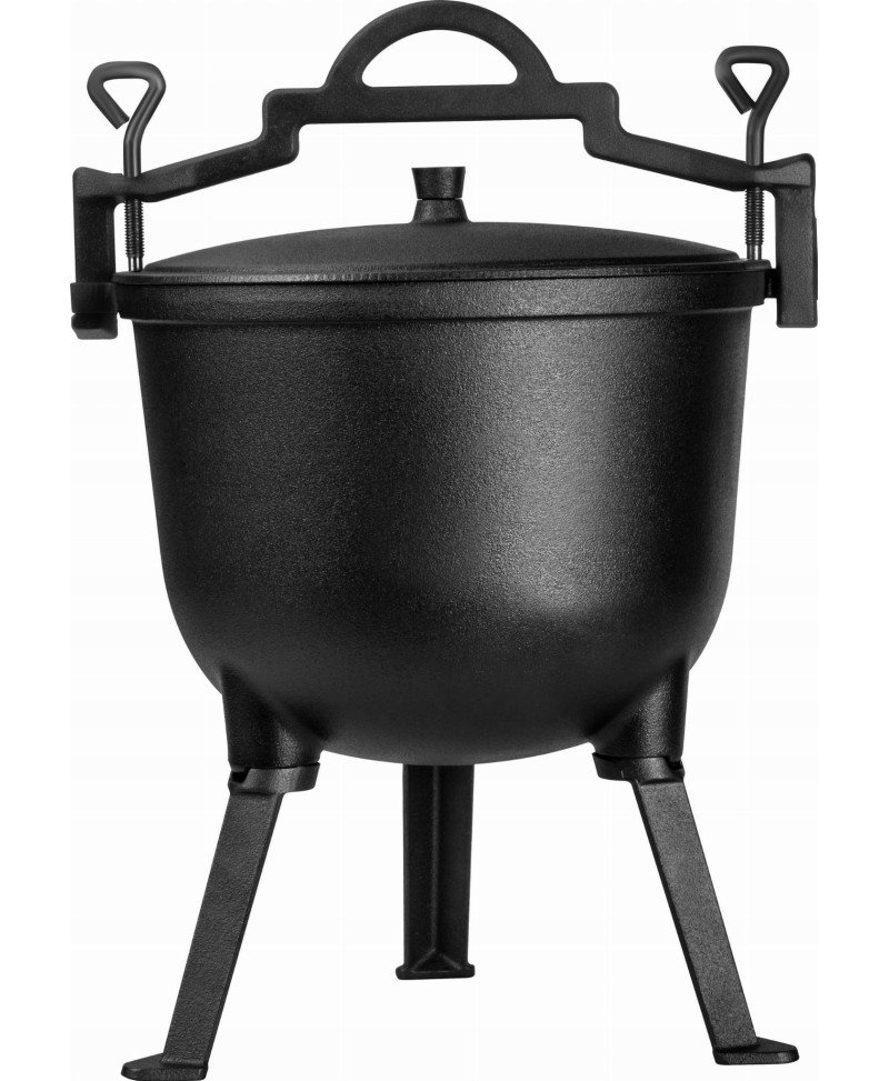 Kociołek wyposażony jest w trzy odkręcane nóżki, które umożliwiają stabilne ustawienie naczynia bezpośrednio w żarze. Nie ma potrzeby zawieszania garnka nad ogniem — wystarczy ustawić go na rozżarzonych węglach.