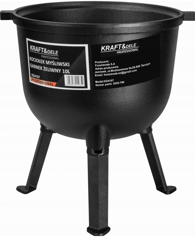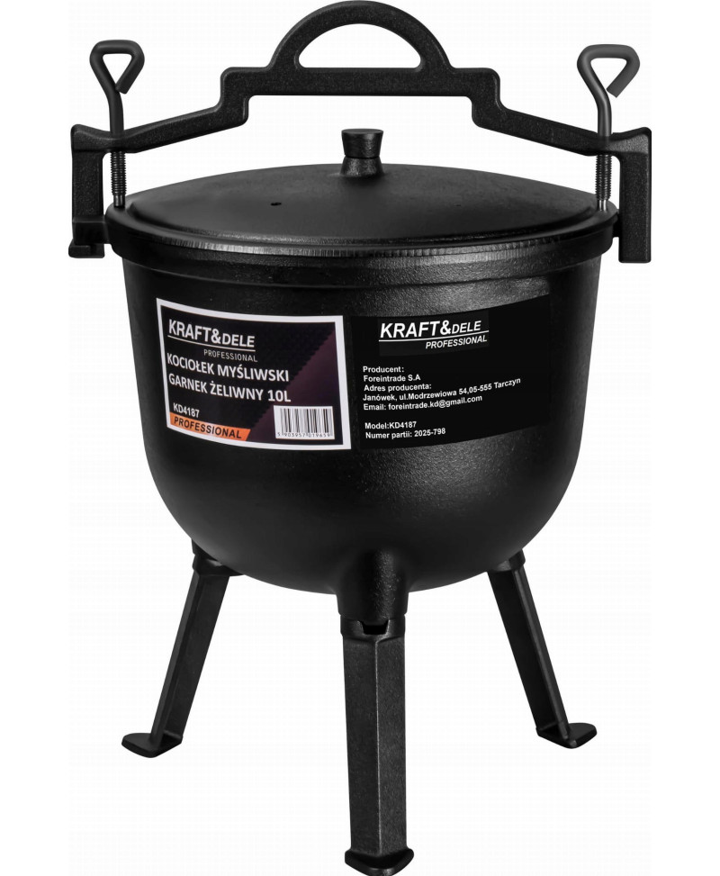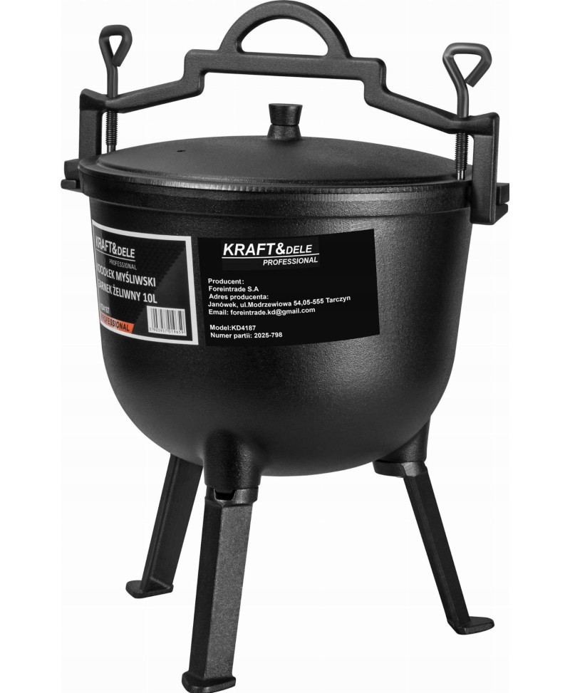 Kociołek żeliwny 10L na ognisko – garnek myśliwski do pieczonek i duszonek z trójnogiem
