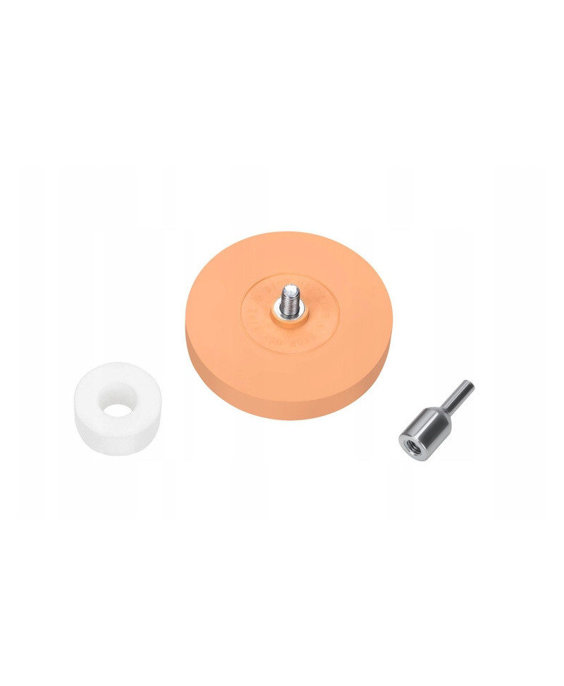 KRĄŻEK GUMOWY DO USUWANIA KLEJU FARBY NAKLEJEK FOLII NA WIERTARKĘ + ADAPTER